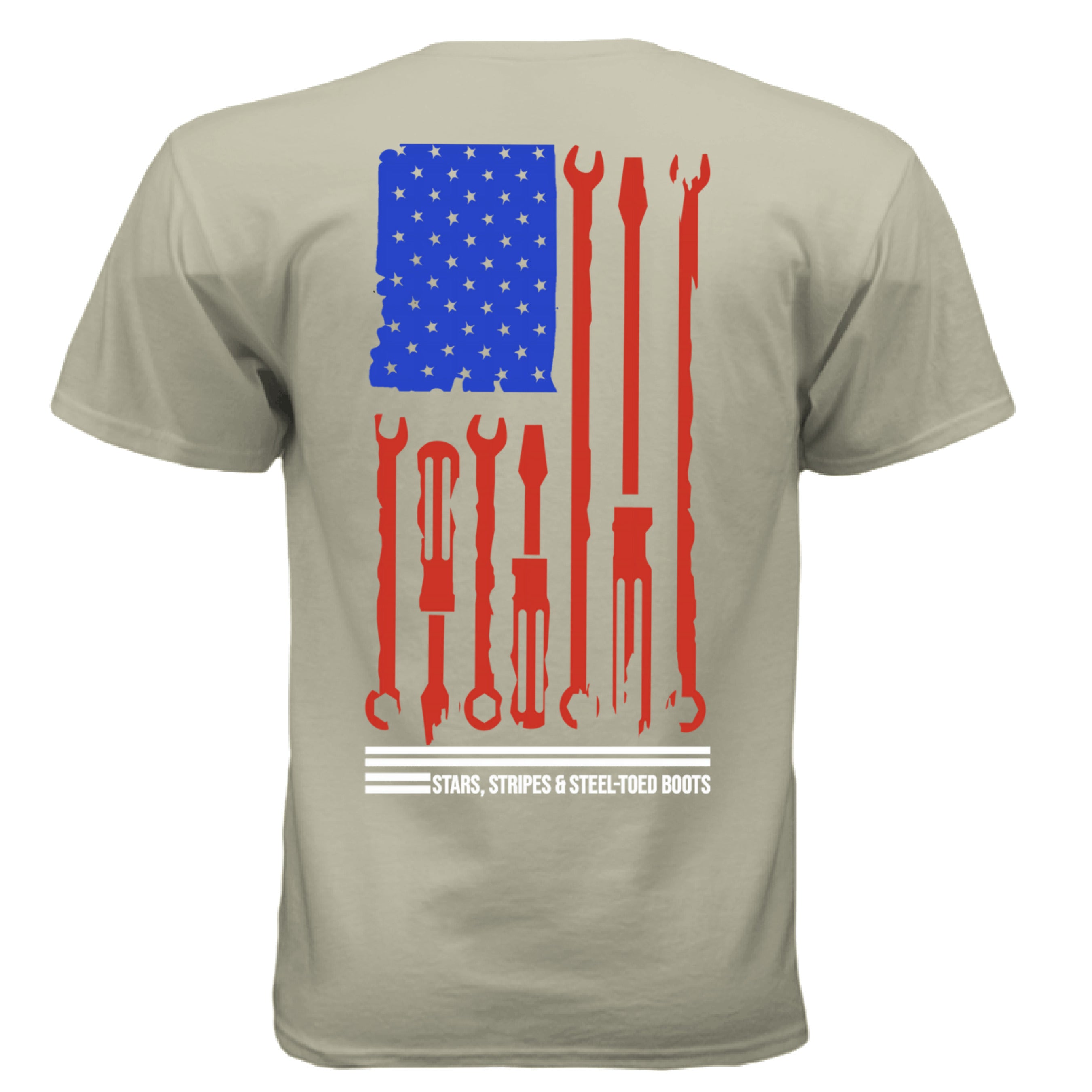 Stars Stripes Steel-Toed Boots Mens Work T-Shirt – Patriotic Tradesman